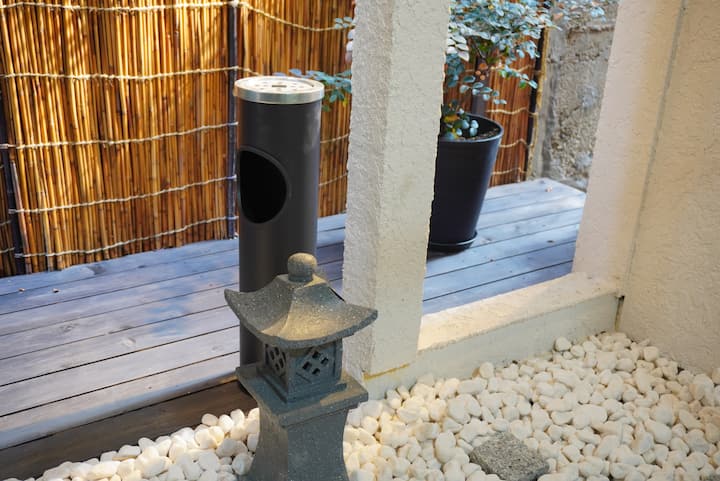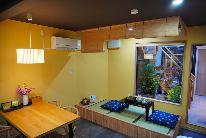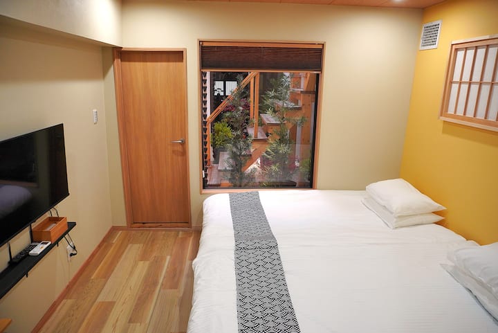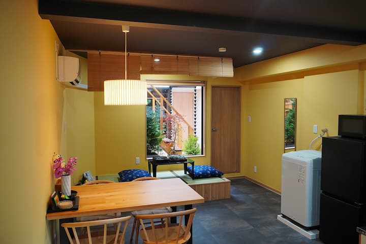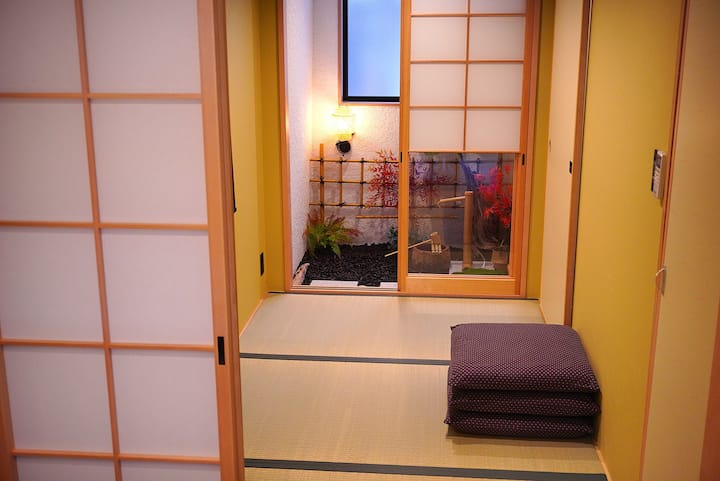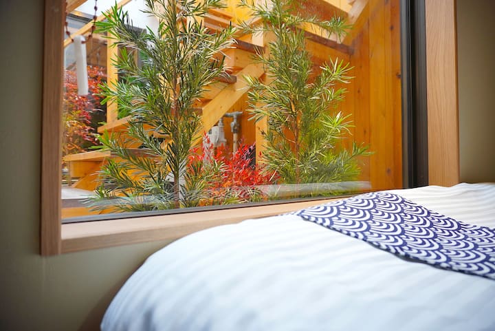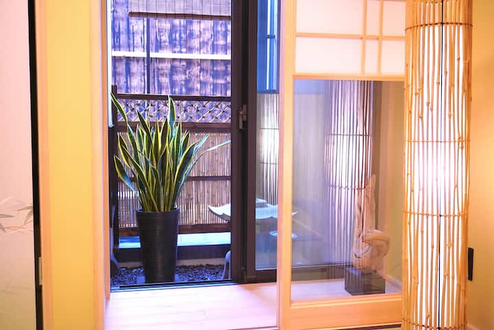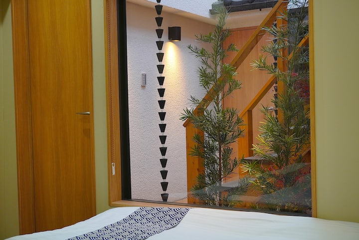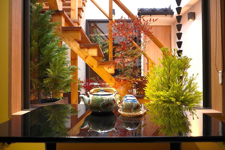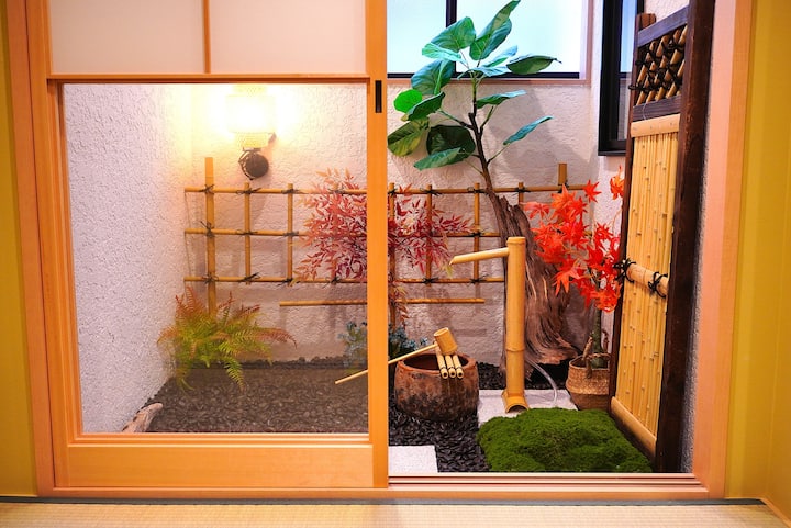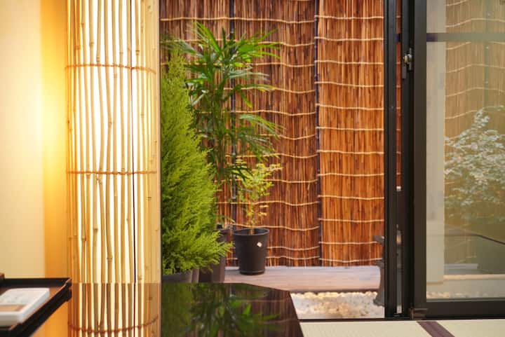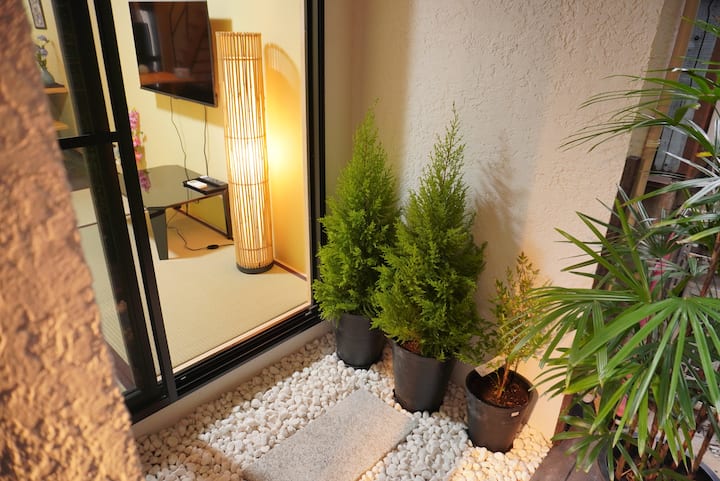大阪・花園町駅から徒歩わずか5分。賑やかな市内へのアクセスを確保しながらも、一歩足を踏み入れれば静寂な和の世界が広がる一棟貸しの宿「瑠璃居(るりきょ)」です。