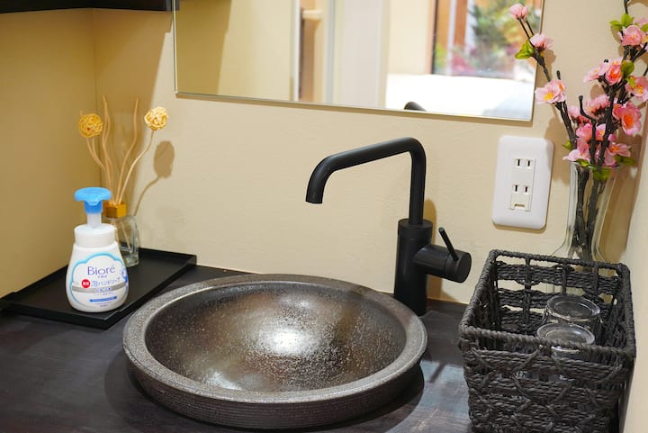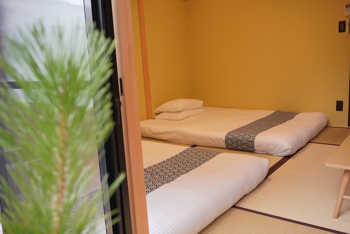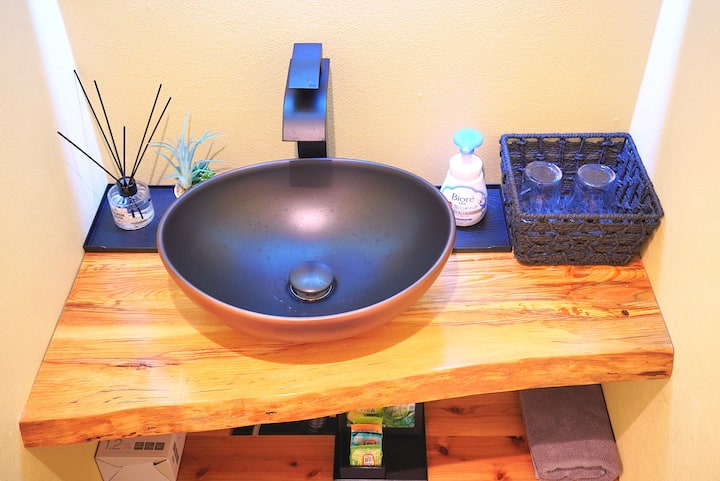 現代的な機能性と日本の伝統美が融合したこの空間は、瑠璃色のタイルと流木が織りなすアートが印象的。最大8名様(大人6名+8歳以下児童2名)まで宿泊可能な3つの寝室を備え、ご家族やグループでの旅行に最適です。